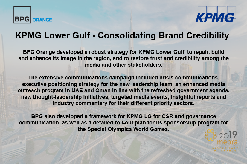 Company Name: BPG Orange and KPMG Campaign Name: Consolidating Brand Credibility Awards won: Gold Winner for Best Professional Services Campaign Continue reading➦
