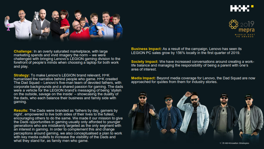 Company Name: Hill+Knowlton Strategies Campaign Name: Lenovo Dad Squad Awards won: Bronze Winner for Best use of Creative Continue reading➦