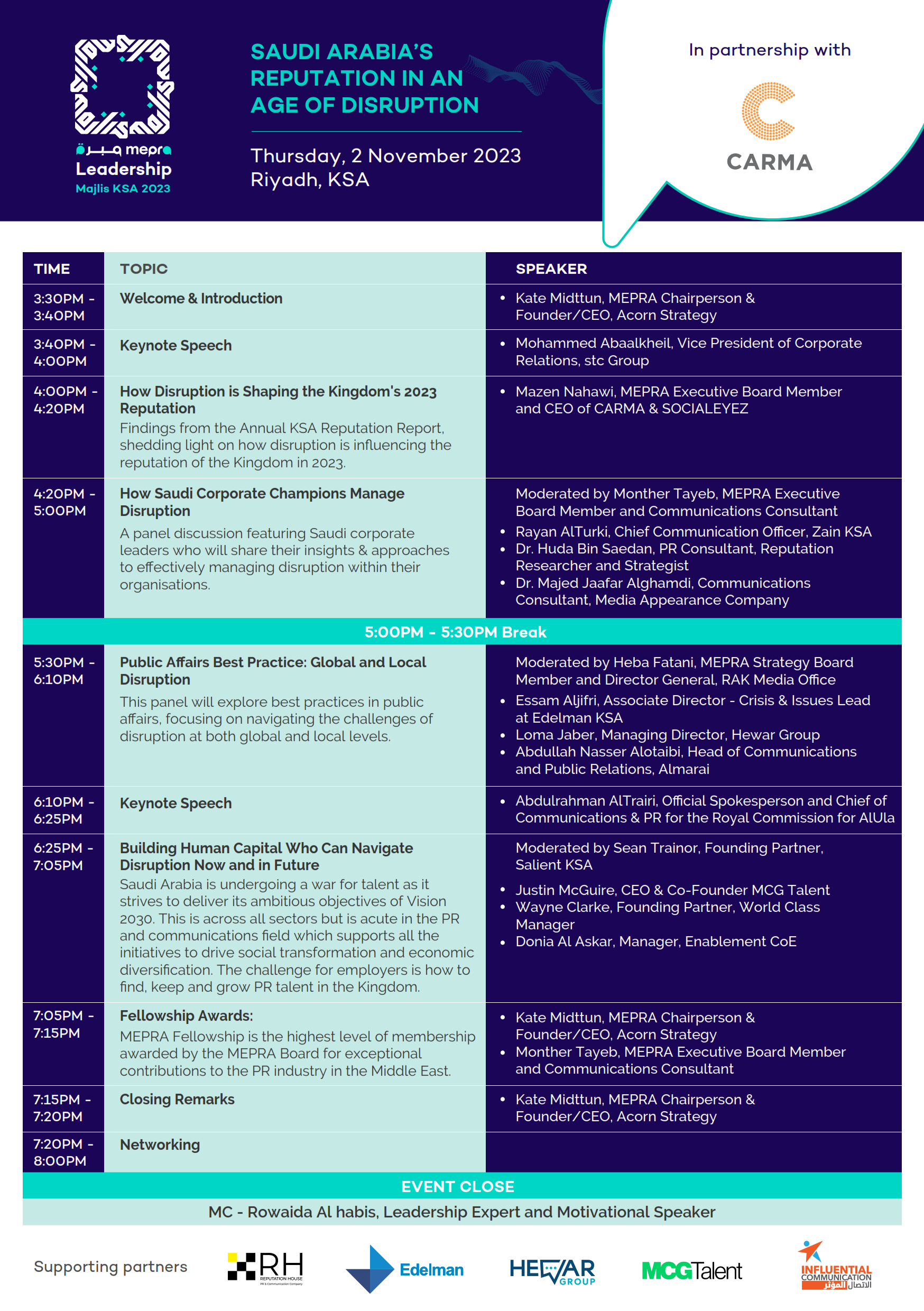 2023 MEPRA Leadership Majlis KSA: Saudi Arabia’s Reputation in an Age of Disruption